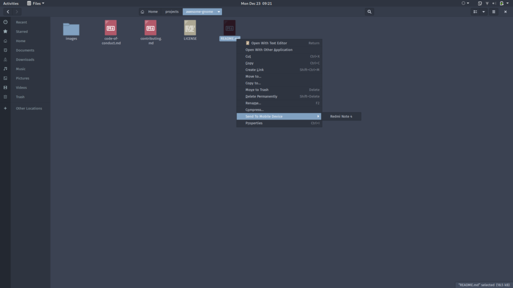 GSConnect 允许你直接从计算机上的文件资源管理器的关联菜单向 Android 设备发送文件。