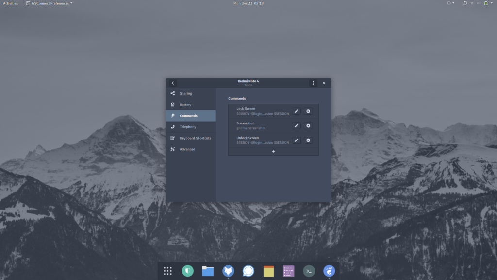 GSConnect 允许你定义命令,然后可以从远程设备在计算机上运行这些命令。这使得你可以远程截屏,或者从你的 Android 设备锁定和解锁你的桌面。