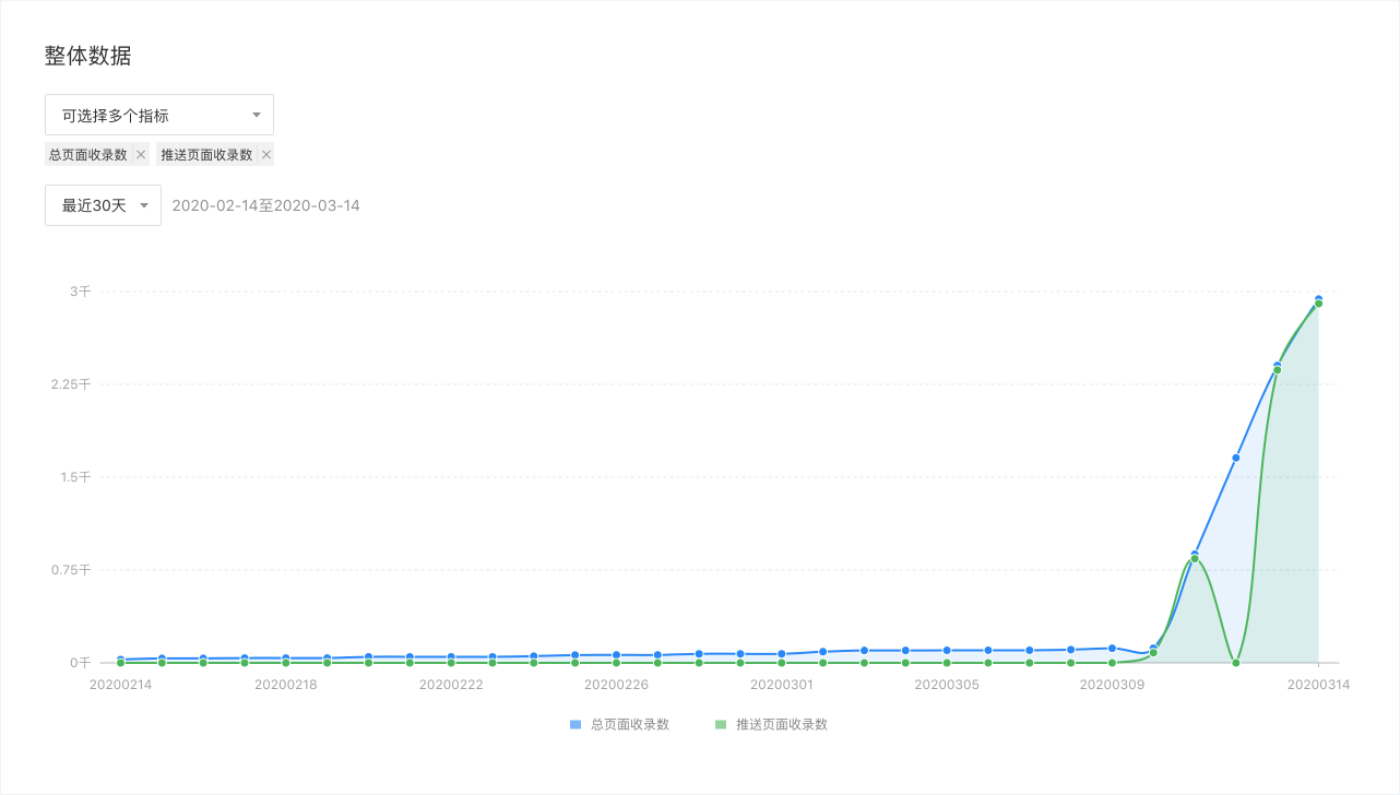 (上图中 3 月 12 号的推送收录数据可能数据出错了)
