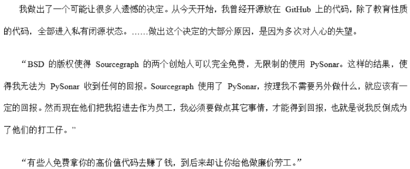 注:原博文《为什么我的代码进入闭源状态》地址已经 404 无法访问,大家可以搜索相关转载。