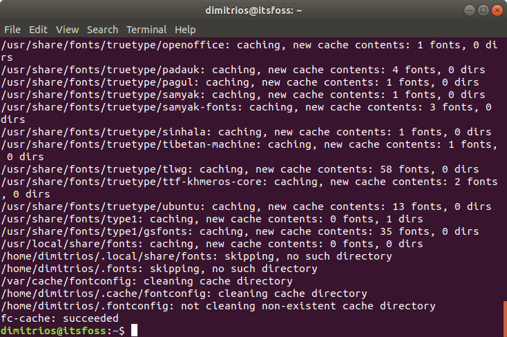 当安装完成后,你应该使用下面的命令来更新字体缓存: