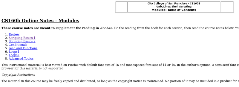 也许这不是最好的免费资源 —— 但是如果你已经为学习 shell 脚本编程做好了探索每种资源的准备,为什么不看看旧金山城市学院的 “在线笔记” 呢?
