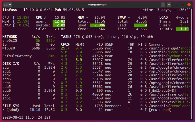 Glances 是一个系统监控工具,它把这些都联系在一起,并提供了更多的功能。我最喜欢的是,你可以在远程 Linux 服务器上运行 Glances 来监控本地系统的系统资源,也可以通过 Web 浏览器监控。