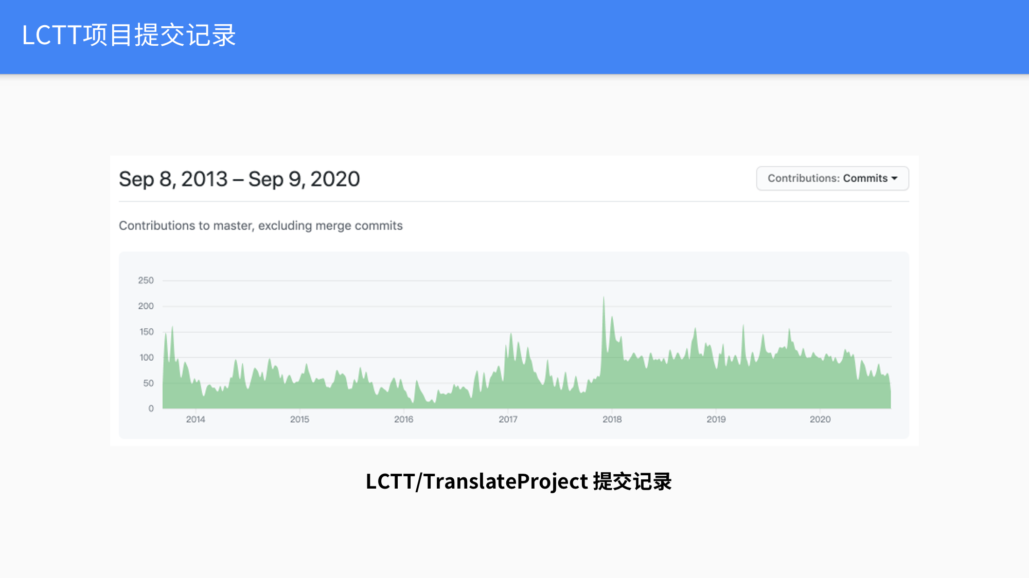 作为回顾,我来介绍一下 LCTT 这 7 年间在主项目(TranslateProject)上取得的成就: